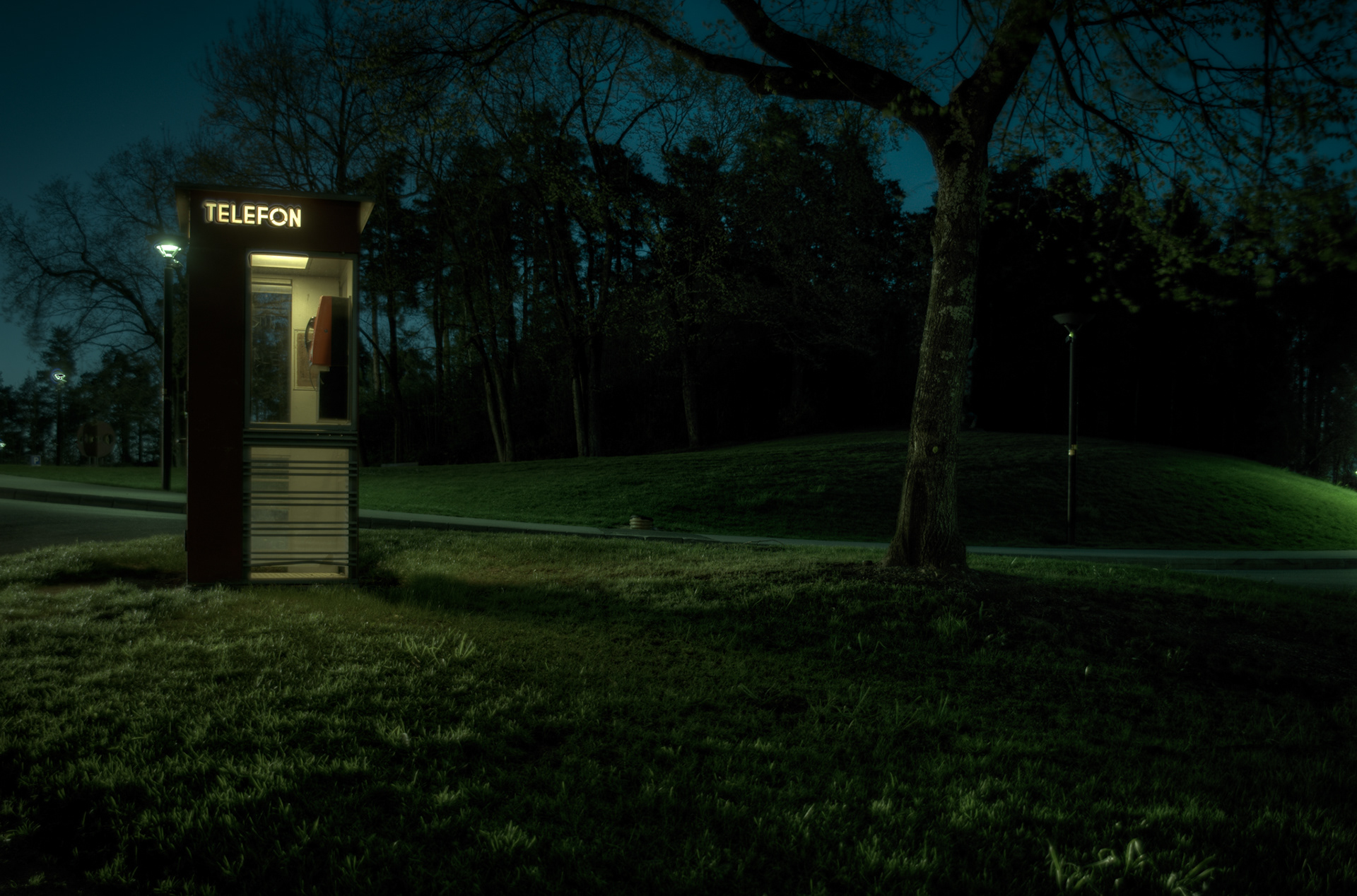 Just some photos from a beautiful night with a full moon. Near the Henie Onstad museum there is an old phonebooth.